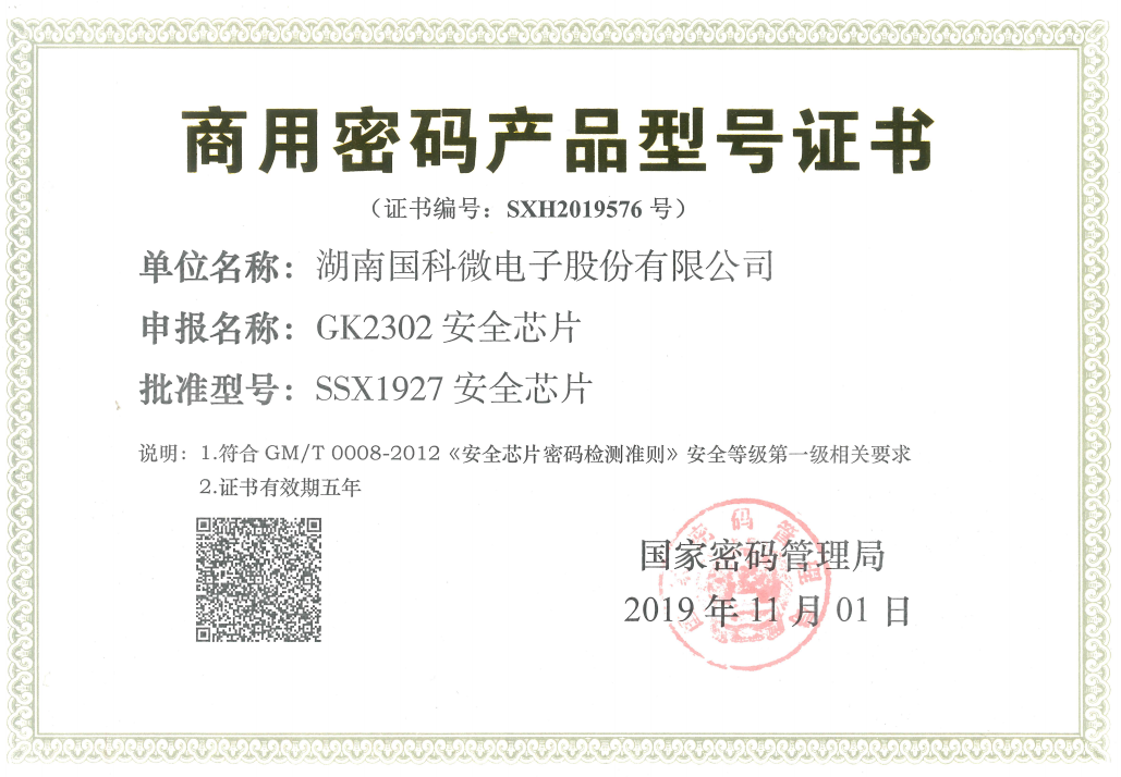 商用密碼產(chǎn)品型號(hào)證書GK2302